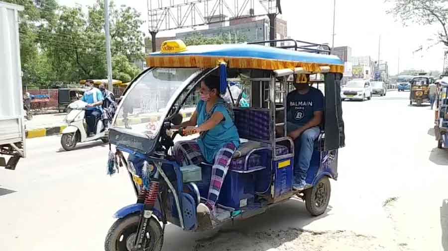 अन्य ई-रिक्शा चालक सविता का करते हंै उत्साहवर्धन