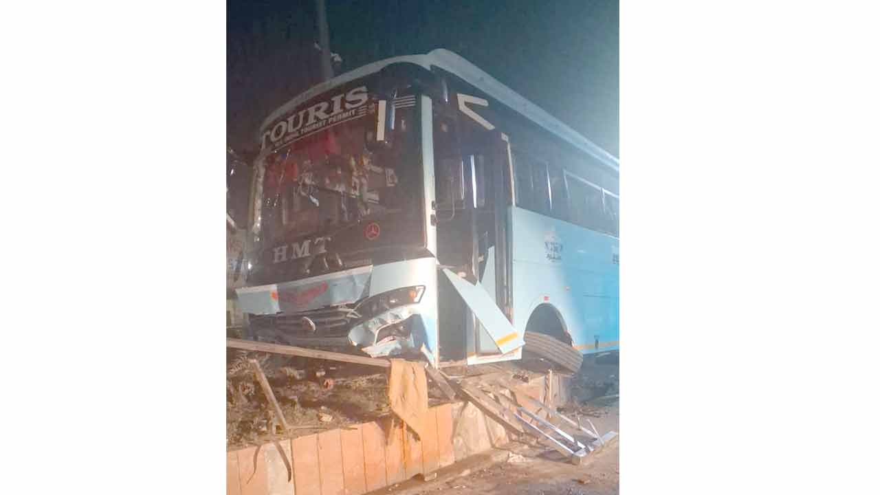 टोहाना (सच कहूँ/सुरेन्द्र गिल)। Tourist Bus Accident: पंजाब के लुधियाना से राजस्थान जा रही एक टूरिस्ट बस रविवार तड़के टोहाना शहर के शहीद चौक पर दुर्घटनाग्रस्त हो गई। हादसा रात करीब 2:50 बजे हुआ, जब बस चौक की बाउंड्री पर चढ़कर टकरा गई। गनीमत रही कि बस में सवार करीब 50 यात्रियों में से किसी को गंभीर चोट नहीं आई। पुलिस के अनुसार बस चालक ने बताया कि अचानक बस के सामने पशु आ गया था। उसे बचाने के प्रयास में चालक का संतुलन बिगड़ गया और बस चौक की बाउंड्री से टकरा गई। Tohana News