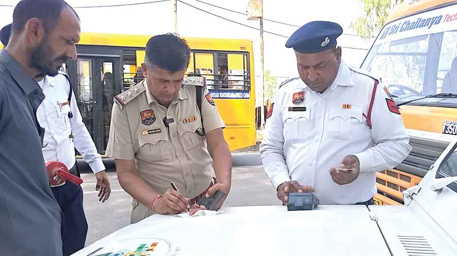 नियम तोड़ने पर यातायात पुलिस ने काटे 7 स्कूली बसों के चालान, एक इंपाउंड