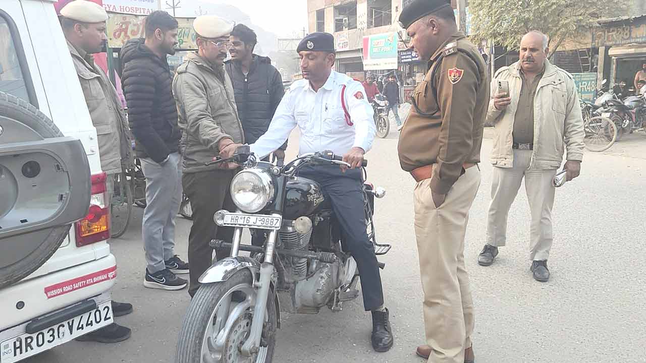 तोशाम (सच कहूँ/विरेंद्र सिंह)। Traffic Challan: तोशाम शहर में यातायात नियमों का उल्लंघन करने वालों के खिलाफ ट्रैफिक पुलिस ने सख्ती तेज कर दी है। सुरेंद्र चौक पर चलाए गए विशेष चेकिंग अभियान के दौरान ट्रैफिक पुलिस ने नियम तोड़ऩे पर एक बुलेट बाइक सवार पर 34 हजार रुपये का चालान काटते हुए बाइक को जब्त कर लिया। चेकिंग के दौरान एक बुलेट बाइक को रोका गया, जिससे तेज धमाके जैसी आवाजें निकल रही थीं। Tosham News