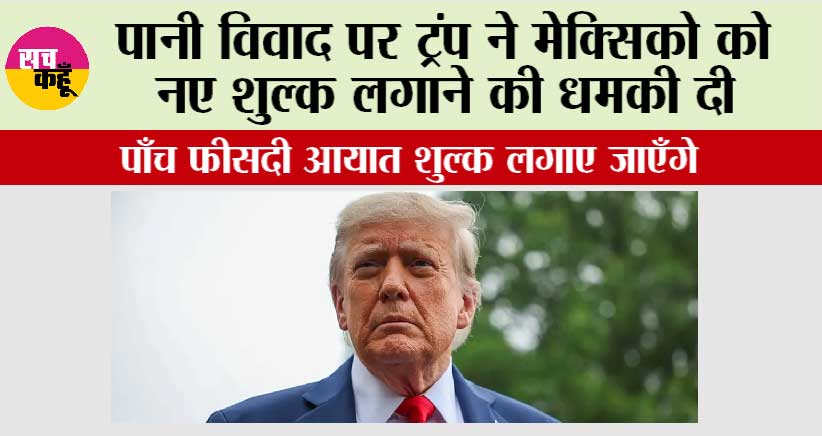 ट्रंप ने कहा कि उन्होंने “इस पानी को फौरन (तुरंत) जारी न किए जाने पर मेक्सिको पर पांच प्रतिशत शुल्क लगाने के दस्तावेजों को अधिकृत कर दिया है।” गौरतलब है कि सन 1944 की जल संधि, को कोलोराडो और तिजुआना नदियों और रियो ग्रांडे के पानी के उपयोग पर संधि के नाम से भी जाना जाता है। इसके अनुसार अमेरिका को कोलोराडो नदी से मेक्सिको को सालाना 15 लाख एकड़-फीट (1.85 अरब घन मीटर) पानी भेजना होता है, जबकि मेक्सिको को पांच वर्षीय चक्रों में रियो ग्रांडे से अमेरिका को 17.5 लाख एकड़-फीट (2.2 अरब घन मीटर) पानी पहुँचाना अनिवार्य है। ट्रंप ने इससे पहले भी 10 अप्रैल को इस मामले पर मेक्सिको को प्रतिबंधों और शुल्कों की धमकी दी थी। इसके बाद अप्रैल के अंत में दोनों पक्षों ने प्रगति की घोषणा की थी।