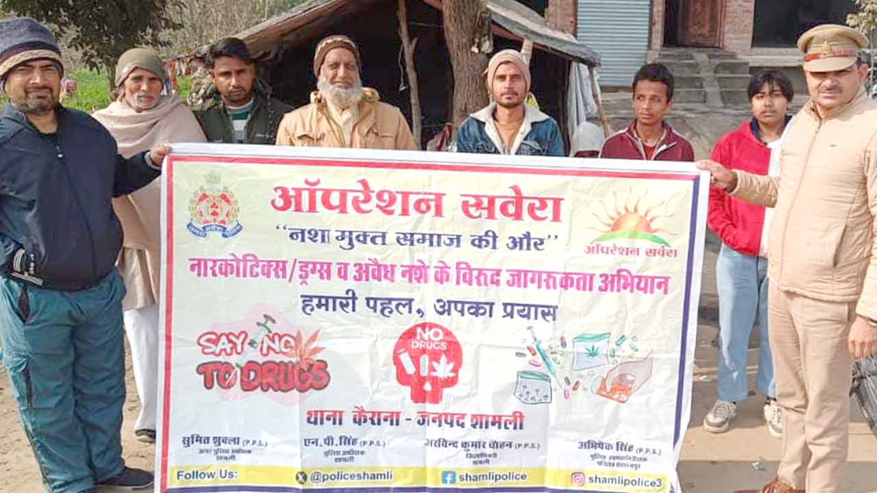 कैराना (सच कहूँ न्यूज़)। Operation Savera: एसपी शामली नरेंद्र प्रताप सिंह के निर्देशन एवं एएसपी सुमित शुक्ला के मार्गदर्शन में कोतवाली पुलिस के द्वारा ‘ऑपरेशन सवेरा: नशे के अंधकार से, जीवन के उजाले की ओर’ अभियान के तहत सोमवार को क्षेत्र के गांव झाड़खेड़ी में एक प्रभावशाली नशा-मुक्ति जागरूकता कार्यक्रम का आयोजन किया गया, जिसका मुख्य उद्देश्य युवा पीढ़ी को नशे के दुष्प्रभावों से अवगत कराते हुए उन्हें नशा-मुक्त जीवनशैली अपनाने हेतु प्रेरित करना रहा। Kairana News