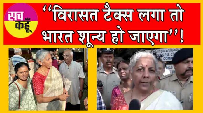 Inheritance Tax Row : नई दिल्ली। केंद्रीय वित्त मंत्री निर्मला सीतारमण ने शुक्रवार को मीडिया के सवालों का जवाब देते हुए कहा कि अगर विरासत टैक्स लगाया जाता है तो भारत दस वर्ष पीछे चला जाएगा, जहां भारत की प्रगति ‘शून्य’ हो जाएगी और देश उस युग में वापिस चला जाएगा, जब कांग्रेस ने 90% टैक्स लगाया था। Inheritance Tax