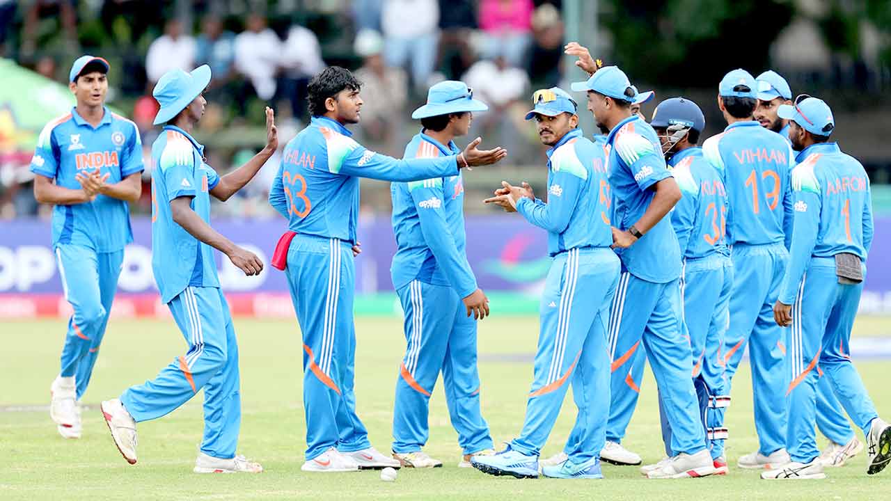 हरारे (एजेंसी)। U19 World Cup Final: वैभव सूर्यवंशी (175) के विस्फोटक शतक, कप्तान मयंक अग्रवाल (53), अभिज्ञान कुंडु (40 ) और शाह सतनाम जी क्रिकेट अकेडमी के होनहार खिलाड़ी कनिष्क चौहान (37*) की पारियों की बदौलत भारत ने शुक्रवार को अंडर-19 विश्वकप के फाइनल में इंग्लैंड को 100 रन से हराया। 412 रनों के भारी भरकम लक्ष्य का पीछा करते हुए इंग्लैंड की पूरी टीम 311 रनों पर ढेर हो गई। भारत की ओर से अंबरीश ने तीन, कनिष्क चौहान ने दो, दीपेश ने दो, खिलन पटेल और आयुष महात्रे ने 1-1 विकेट ली। आज यहां भारत ने टॉस जीतकर पहले बल्लेबाजी करने का फैसला किया। बल्लेबाजी करने उतरी भारतीय टीम की शुरुआत अच्छी नहीं हुई और उसने चौथे ही ओवर में एरन जॉर्ज (नौ) का विकेट गंवा दिया। U19 World Cup Final