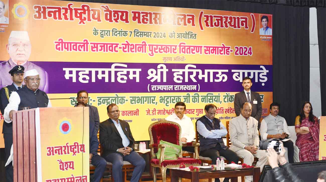 जयपुर (सच कहूँ न्यूज़)। राज्यपाल हरिभाऊ बागडे (Governor Haribhau Bagde) ने शनिवार को अन्तर्राष्ट्रीय वैश्य महासम्मेलन द्वारा जयपुर व्यापार महासंघ के सहयोग से आयोजित समारोह में दीपावली पर गुलाबी नगर की रोशनी और साज—सज्जा में विभिन्न श्रेणियों में उल्लेखनीय योगदान देने वाले बाजारों एवं प्रतिष्ठानों को पुरस्कार प्रदान किया। उन्होंने इस मौके पर कहा कि सबकी दीपावली में अपनी दीपावली मनाएं। Governor Haribhau Bagde
