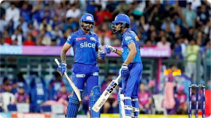 मुबंई (एजेंसी)। गेंद और बल्ले से खुद को उम्दा साबित (Mi Vs Rr) करते हुये मुबंई इंडियंस ने रविवार को इंडियन प्रीमियर लीग (आईपीएल) के एक हजारवें मुकाबले में राजस्थान रायल्स के खिलाफ छह विकेट से रोमांचक जीत दर्ज की। यशस्वी जायसवाल (124) के शतक की बदौलत राजस्थान ने पहले खेलते हुये सात विकेट पर 212 रनों का स्कोर खड़ा किया जिसके जवाब में मुबंई के बल्लेबाजों ने एक इकाई के तौर पर खेलते हुये 213 के विजयी लक्ष्य को तीन गेंदे शेष रहते हुये चार विकेट के नुकसान पर हासिल कर लिया।